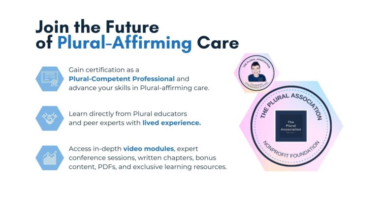 This page contains a collection of resources about Plurality for Professionals like clinicians, therapists, social workers, researchers, coaches, peer support workers and others who support people with dissociative identity disorder, …